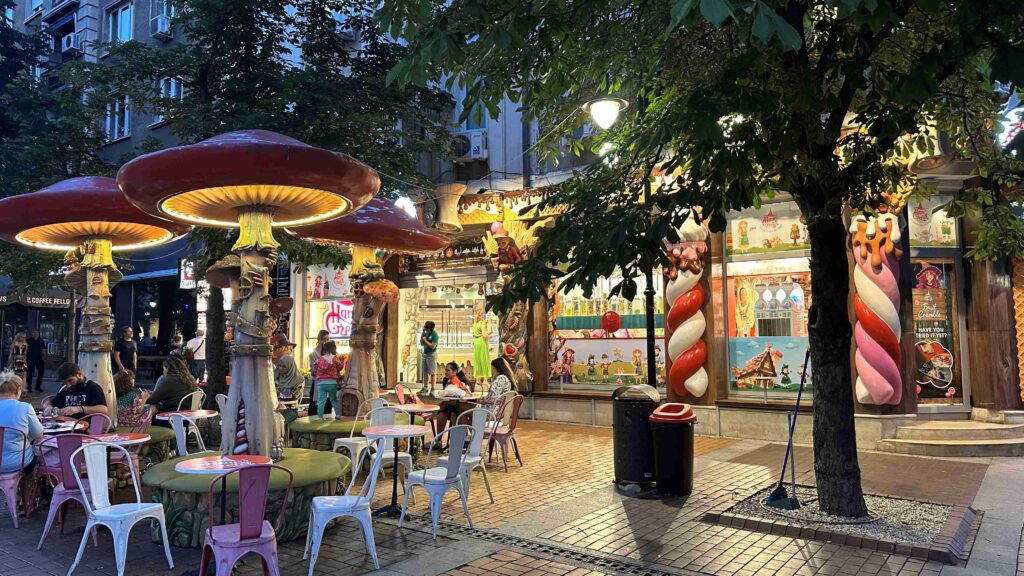Além disso, muitos estabelecimentos possuem mesas ao ar livre, o que torna o ambiente ainda mais agradável nos meses de primavera e verão. Portanto, seja para um café rápido, um almoço leve ou um jantar descontraído, o Boulevard Vitosha oferece opções para diferentes estilos e orçamentos. Almoçamos, tomamos sorvete e jantamos por lá todos os dias em que estivemos na cidade.