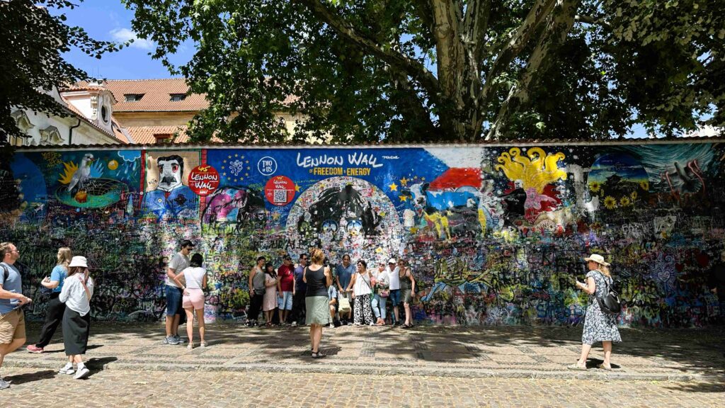 Vou acrescentar à lista do que fazer na cidade o Muro de John Lennon, localizado em Malá Strana, que se tornou um dos símbolos mais fortes de liberdade e expressão de Praga. Durante o regime comunista, jovens tchecos passaram a grafitar versos de músicas dos Beatles, frases de protesto e mensagens de paz no muro após o assassinato de Lennon em 1980, mesmo com a repressão policial que insistia em apagá-las. Contudo, as palavras sempre retornavam, pois o muro se transformou em uma voz coletiva que ecoava resistência silenciosa. Hoje, o local segue vivo, colorido e em constante mudança, já que novos desenhos surgem diariamente.